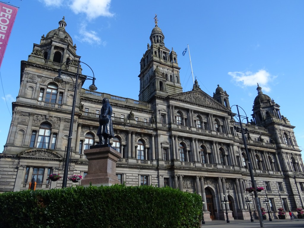 Llegamos a George Square, el centro neurálgico de la ciudad, donde se sitúan el ayuntamiento y una serie de estatuas de personajes ilustres, como Robert Burns, James Watt o Sir Walter Scott.