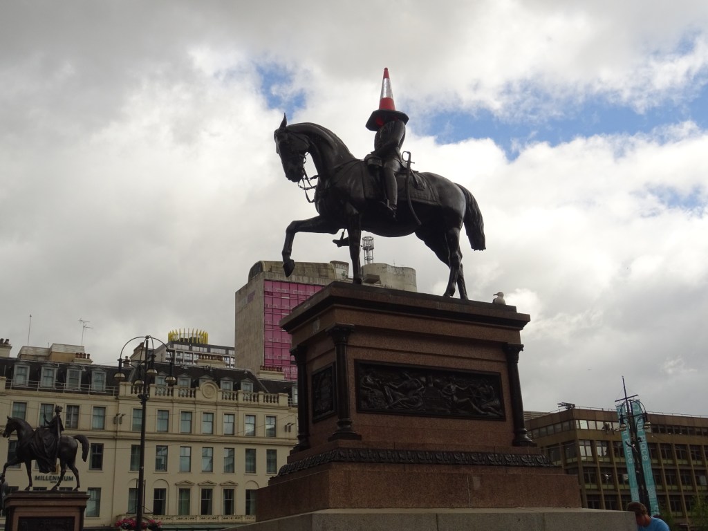 Inicialmente, el cono estaba en la estatua del primer duque de Wellington, emblema del poderío militar británico. La tradición de este “sombrero” viene de los años 80, por la noche, a la salida de pubs y discotecas.