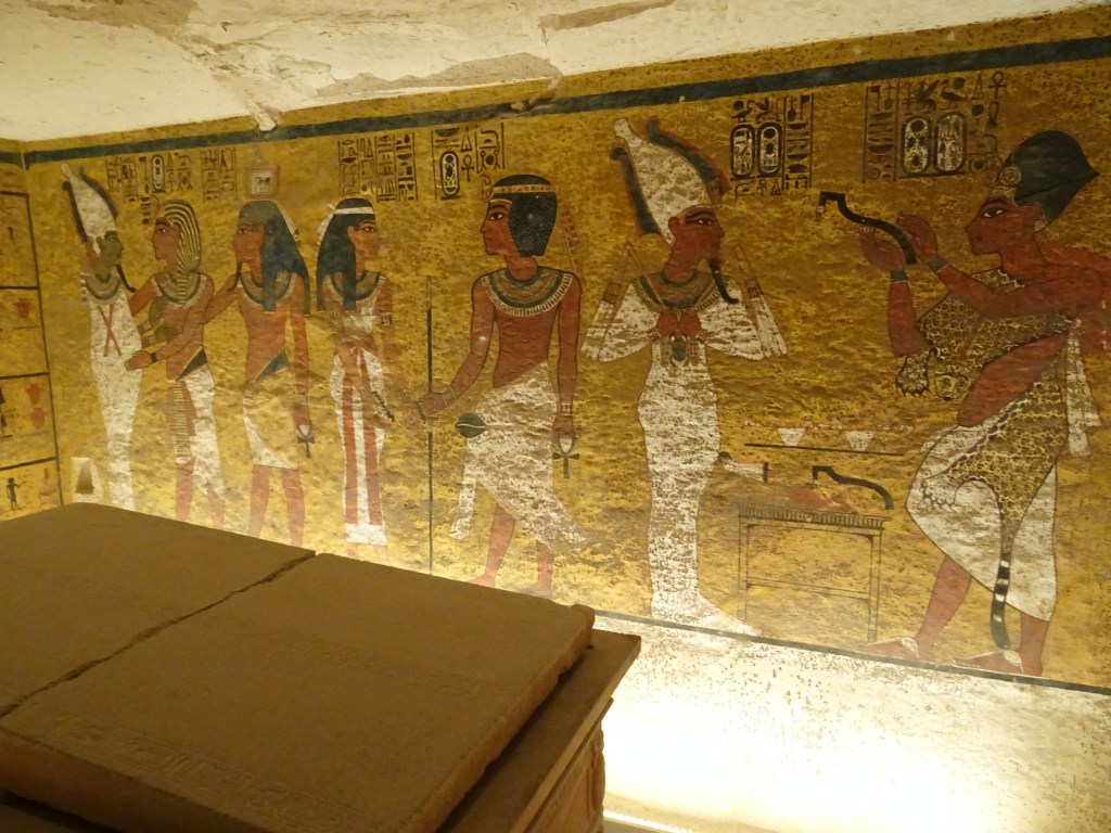 Dejé para el final la de Tutankamón que, aunque no es la más grande, sí es la más conocida y, por lo tanto, muy demandada. La tumba como tal es muy pequeña y, sinceramente, lo que hace que valga la pena es que los colores de las paredes se mantienen prácticamente intactos y nos podemos hacer a la idea de cómo eran el resto de tumbas. Además, la momia del faraón se encuentra allí… Desde mi punto de vista, si quieres pagar la entrada aparte por ver una de las que no están incluidas, elije otra: la tumba está llena de gente, no lo vas a poder disfrutar en condiciones y es muy pequeña.