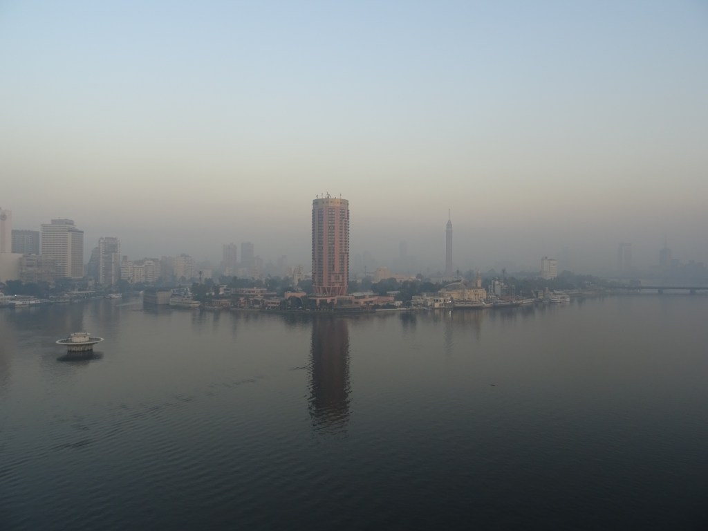 Cuando por fin llegamos al alojamiento, alucino una vez más: una torre de 34 plantas, a todo lujo y, mi habitación, que “sólo” está en la 11, hace esquina y tenemos dos ventanales que dan a un meandro del Nilo. Las vistas hablan por sí solas.