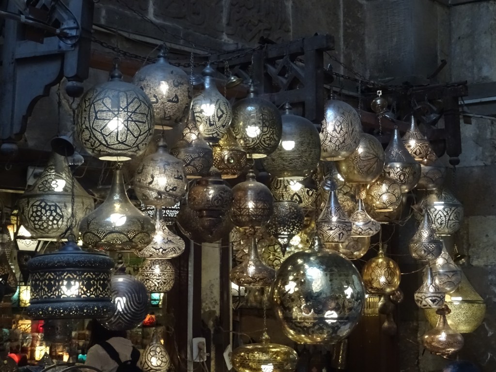 La mañana siguiente venía cargada de muchas emociones, íbamos a visitar las pirámides de Guiza y Menfis, la antigua capital. De estas visitas hablaré en un post futuro. Así que, dando un salto en el tiempo, nos plantamos un día más tarde realizando la visita nocturna del bazar de Khan Al Khalili. Fundado en el siglo XIV, se puede encontrar de todo ya que es un mercado de primer orden: oro, especias, ropa, productos de cuero, todo tipo de souvenirs. Entramos por la puerta de Bab Al Futuh y recorremos tras Walid la calle Al Muizz, una de las más antiguas de la ciudad, nos enseña los restos de las casas medievales, la mezquita Al Aqmar y los distintos puestos con lámparas, frutas, shishas, teléfonos vintage, retratos de actores de cine egipcio clásico. ¿Cómo no iba a gustarme?