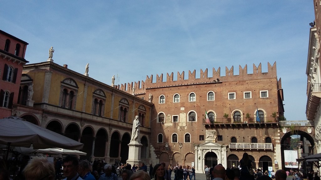 Al terminar, fuimos a caminar por las calles adoquinadas del centro histórico. Es un centro pequeño y la mayoría de lugares de interés están muy próximos unos de otros. El Palacio Barbieri, sede del Ayuntamiento, la Piazza de Erbe, el Palacio Maffei, el duomo, iglesias, Piazza dei Signori, con su estatua de Dante y, por supuesto, el punto más visitado de la ciudad: la casa de Julieta.