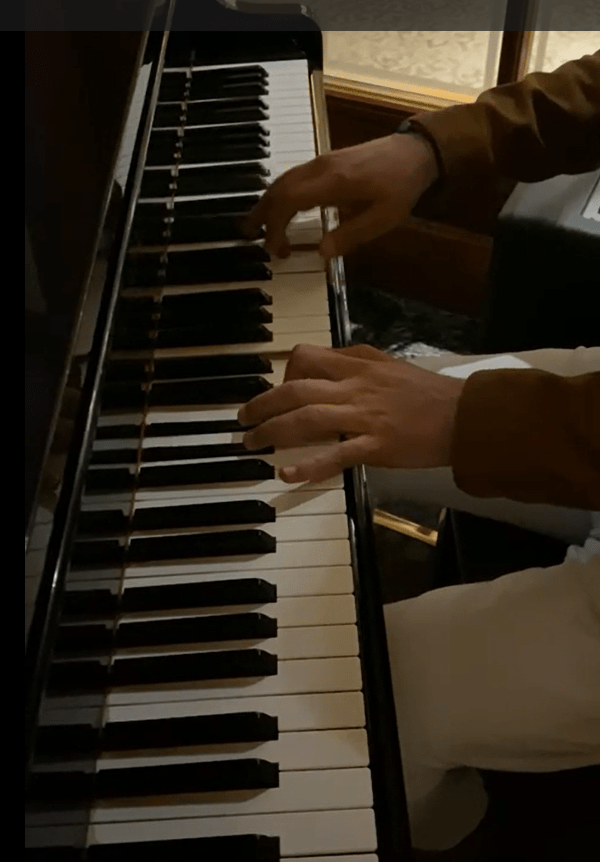 De repente, dos trabajadores del hotel se acercaron y no para pedir que bajásemos el tono o advertir de que el piano estaba de adorno, sino para felicitarle por el buen rato que les estaba haciendo pasar. Fotos con él, le invitaron a un zumo y con unas sonrisas de esas de felicidad, de las que sabes que van a tardar en borrarse, de las que te hacen estar deseando volver a casa para contar lo que acabas de presenciar.