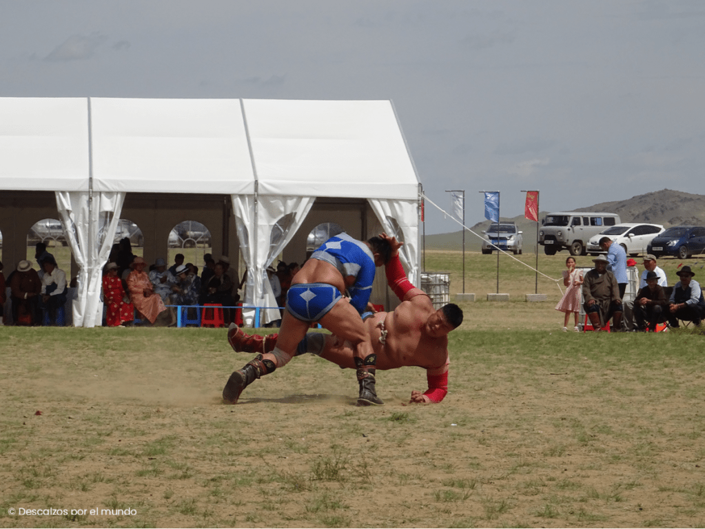 La lucha mongola es una de las competiciones que más público congrega. No hay categorías diferenciando por peso, por lo que los más corpulentos suelen ser los mejores.