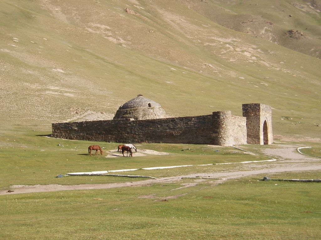 Tash Rabat es un caravanserai en piedra del siglo XV en la ruta de la seda en Kirguistán. Se encuentra en un asombroso paisaje de los Montes Celestiales de Tian Shan a más de 3000 metros de altura. En verano se puede dormir en un campamento de yurtas y disfrutar del cielo estrellado nocturno más increíble que he visto.