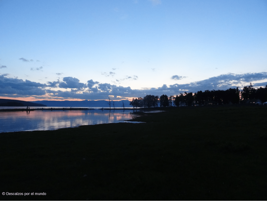 Necesitamos el resto del día para llegar al lago Zuun o, mejor dicho, a sus inmediaciones y, cuando lo hicimos, fue un descanso absoluto. Nos dio tiempo a hacer una pequeña ruta sencilla por la ladera de la montaña antes de cenar y a ver el atardecer entre los picos de las montañas.