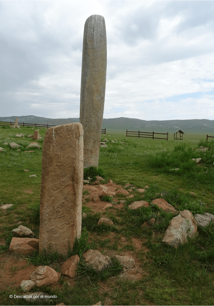 El camino fue largo, la primera parada que hicimos fue en algún punto indeterminado de la estepa para conocer algunas de las piedras de ciervo y tumbas que allí se hallan. Las piedras de ciervo son un tipo de monolitos que tienen ciervos grabados. No se sabe a ciencia cierta el significado, aunque la teoría más extendida es que las antiguas tribus creían que, después de morir, el alma llegaba al cielo a lomos de un ciervo. En el valle se ven distintos túmulos que marcan la situación de tumbas de guerreros o personalidades importantes de la época. El entorno es la definición gráfica de infinito. Creo recordar que Soyloo nos comentó que a la zona se la conoce como el Valle de los Reyes, por la cantidad de tumbas que hay recogidas.