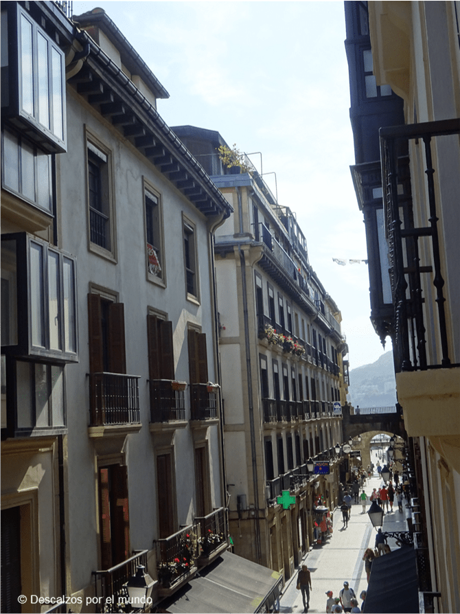 El barrio es tiene un urbanismo que me parece peculiar para tratarse de la zona más antigua. En otras ciudades solemos encontrar un laberinto de callejuelas estrechas y sombrías por el que suele ser complicado orientarse y puede ser que no vuelvas a pasar por el mismo punto por más que lo intentes o que no dejes de volver una y otra vez a esa esquina. En San Sebastián, la Parte Vieja es una cuadrícula: una serie de calles, paralelas entre sí, la recorren de una punta a la otra, mientras que otras tantas las cortan. Esto se debe a que el trazado es de finales del siglo XIX, debido al saqueo que sufrió la ciudad. Sin embargo, esto no le resta ni el más mínimo encanto. Ir andando por la calle 31 de agosto por la del Puerto, cuando el sol va cayendo, mientras que te acercas poco a poco a la Bahía, el olor a mar se va acrecentando y cada vez se escucha más alto el graznido de las gaviotas es un auténtico placer, una experiencia muy recomendable, pese a todo el gentío que hay.