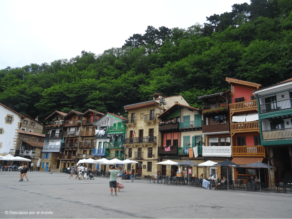 Pasamos por la plaza de Santiago, totalmente abierta a la ría por un lado, y con casas marineras, coloridas y con balcones, al otro. Si seguimos andando por esta calle principal, llega un momento en el que deja de ser calle para convertirse en camino. Continuamos andando. Vemos diminutas calas en las que se bañan adolescentes, deportistas entrenando para escalada, el monte que cada vez ocupa más camino y, sobre todo, el Cantábrico, que no nos deja de acompañar en ningún momento, hasta que no podemos seguir caminando. Hemos alcanzado Puntas.