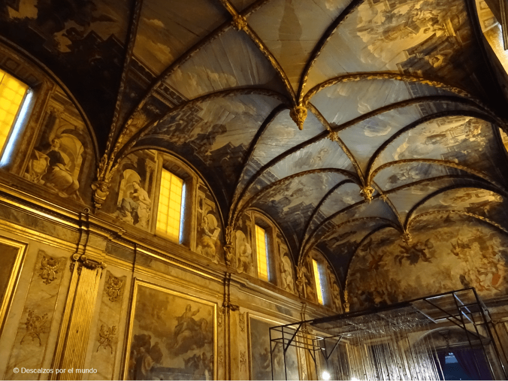 Parece una sala de un museo de arte, apenas queda un centímetro cuadrado en la pared sin un cuadro y todo el techo lleno de frescos de Juan Bautista Despax del siglo XVIII. Como contrapunto, en el interior se había colocado una instalación que emitía un zumbido constante de abejas. Además de lo bonito y llamativo que resulta todo el conjunto, es un lugar poco conocido y, pese a que no estábamos solas, sí que lo pudimos disfrutar con bastante soledad.
