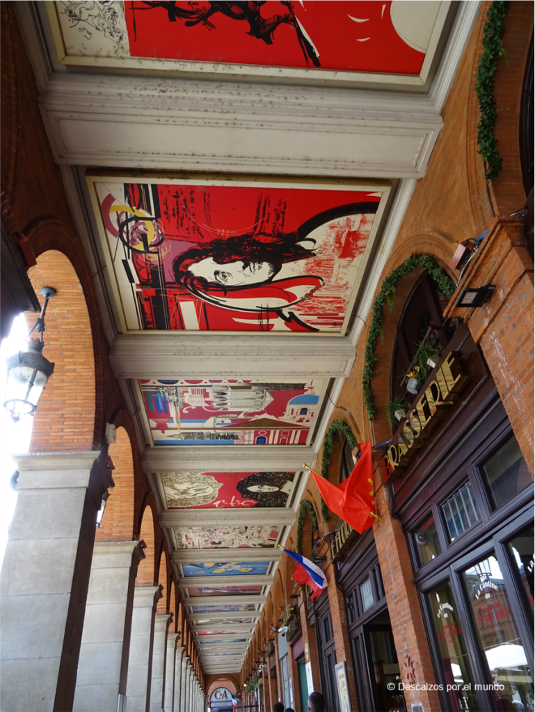 En frente del Capitolio, se hallan las arcades du capitole: un pasillo con arcadas y techo pintado con 29 frescos del artista Raymond Moretti y que representan Toulouse, desde la Prehistoria hasta la actualidad.