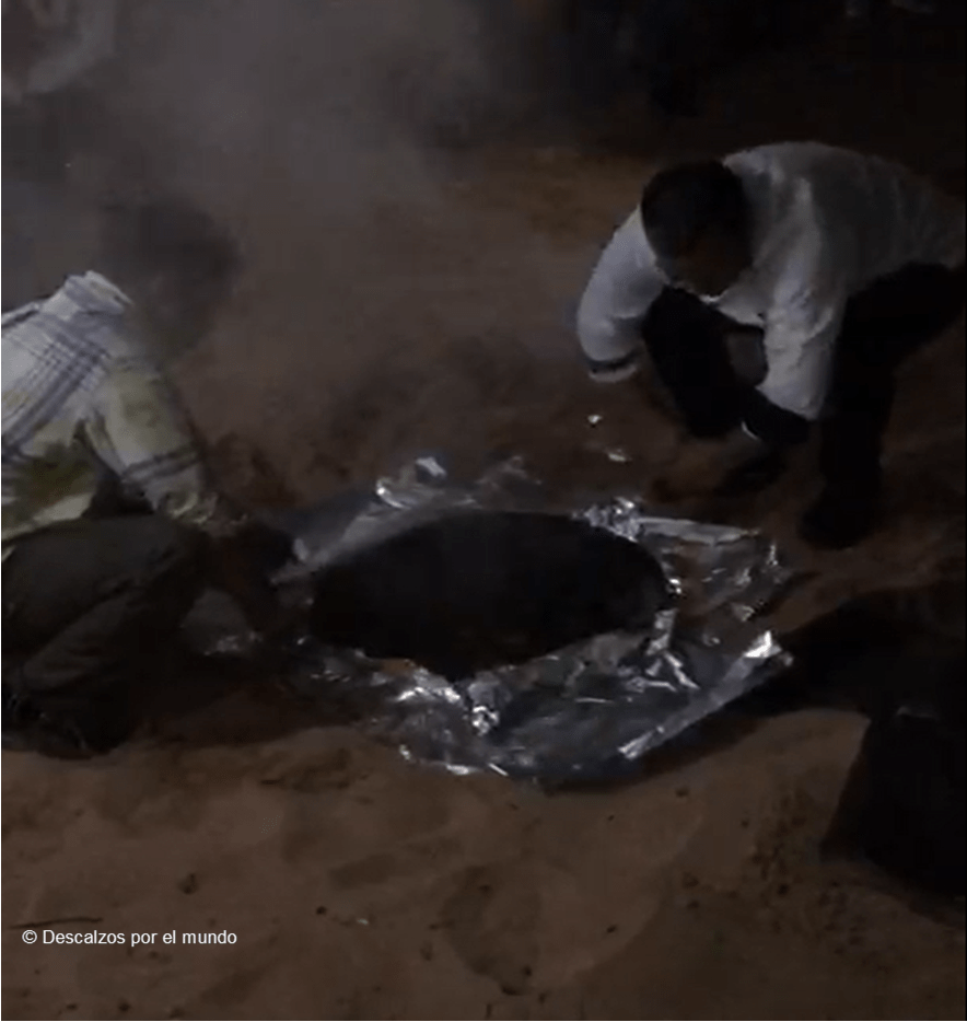 La cena estaría formada por una especie de barbacoa que se preparaba a la manera tradicional de la zona, es decir, enterrada en la arena.