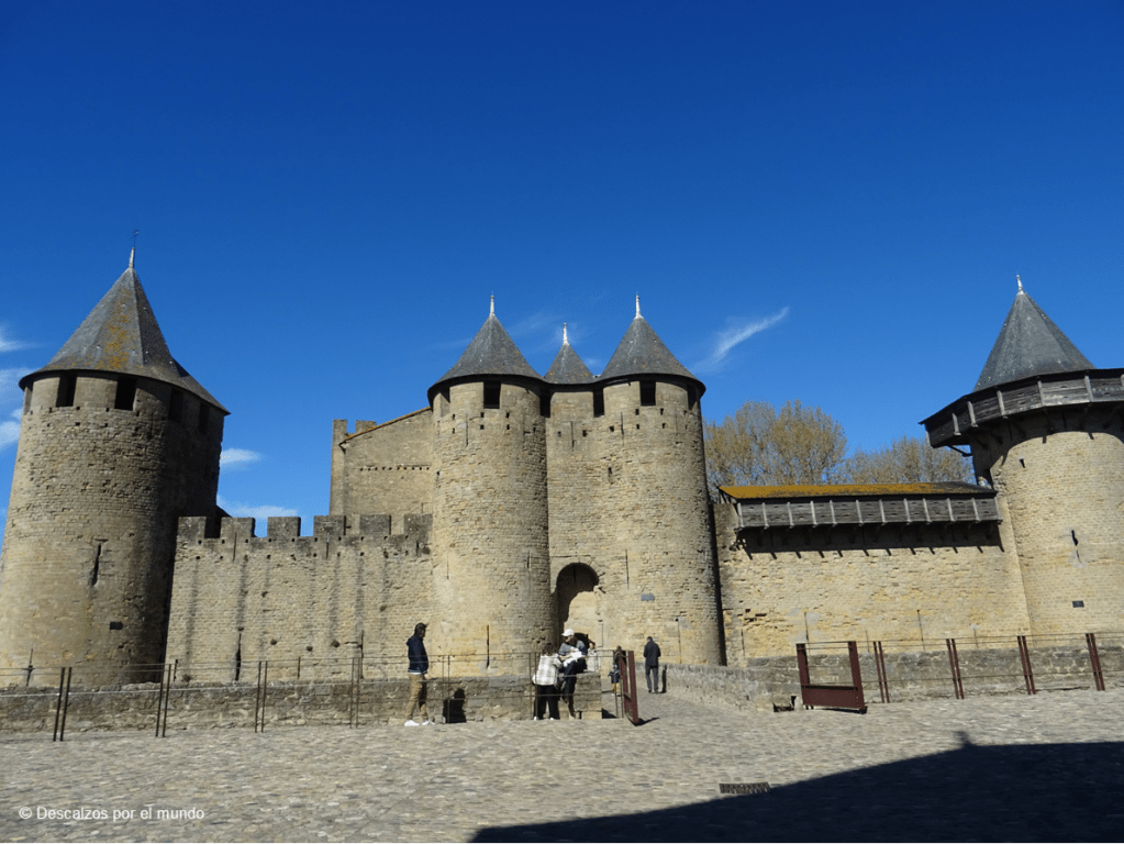 Ante nosotras, 2.500 años de historia. La llegada al castillo desde la Porte Narbonnaise es rápida, aunque ir que ir esquivando a todas las personas con las que no nos habíamos cruzado hasta ese momento. Por suerte, la mayoría están curioseando en las tiendas de souvenirs y en las cafeterías y entramos en el castillo sin esperar colas.