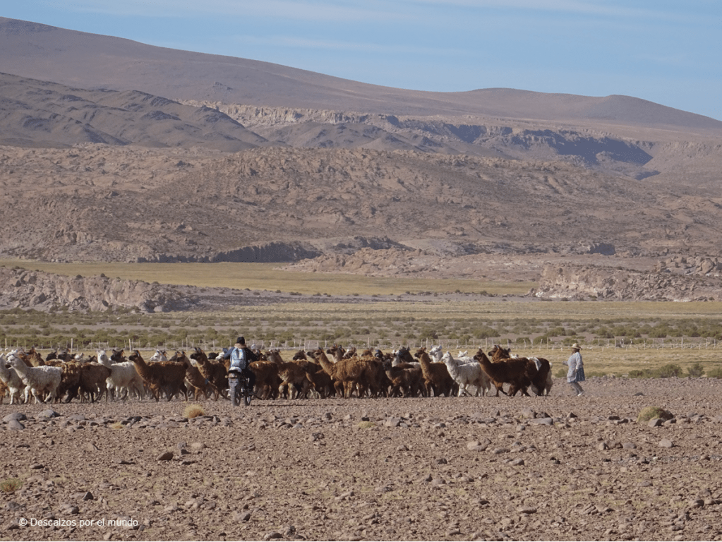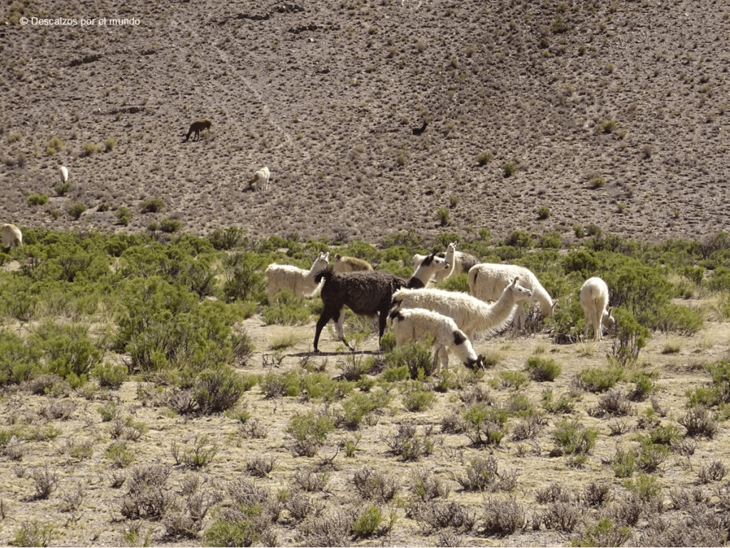 Apenas se ve un árbol, tan solo matorrales; rebaños de llamas, acostumbradas a las personas, aunque mejor no acercarse demasiado porque les gusta escupir; tímidas vicuñas, un tipo de camélido que no ha sido domesticado, con una delicada lana que se considera un producto de lujo, y que salían huyendo en cuanto nos veían; y algunos ñandús, los avestruces de Sudamérica, muy difíciles de ver y, más aún, de fotografiar. Algún que otro cóndor y águila surcan majestuosamente el cielo azul, abriendo sus alas en la máxima amplitud posible.