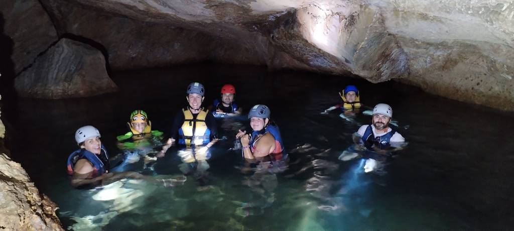 Antes de salir, el monitor nos propone que apaguemos todas las linternas. Oscuridad absoluta, en ningún momento tu ojo se llega a acostumbrar y se empieza a vislumbrar algo. Nada de nada. La ligera corriente te va moviendo, te chocas con las paredes (menos mal que llevamos el casco) o con otras personas. Se trata de un buen momento para disfrutar de ese silencio que a veces es tan necesario.