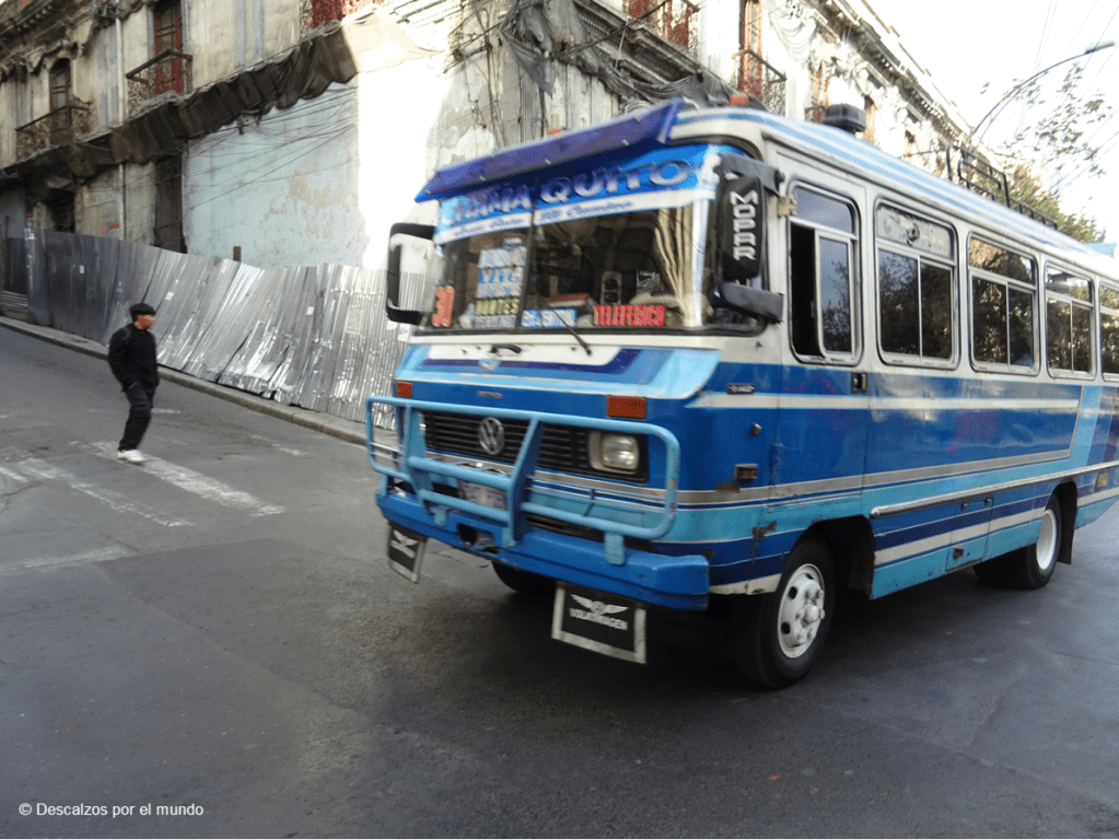 Los micros son autobuses por los que han pasado varias décadas y son de marcas americanas. En el parabrisas tienen todas las paradas anunciadas en carteles. No suelen tener paradas, así que lo paras donde te venga bien y le pides al conductor que pare cuando llegues a tu destino. El trufi es un vehículo compartido y se distingue de un coche “normal” porque lleva unas banderitas en la parte delantera. El minibús usa el mismo concepto que el trufi pero, en vez de ser un coche, es una furgoneta. Sin embargo, el mejor de todos es el teleférico.
