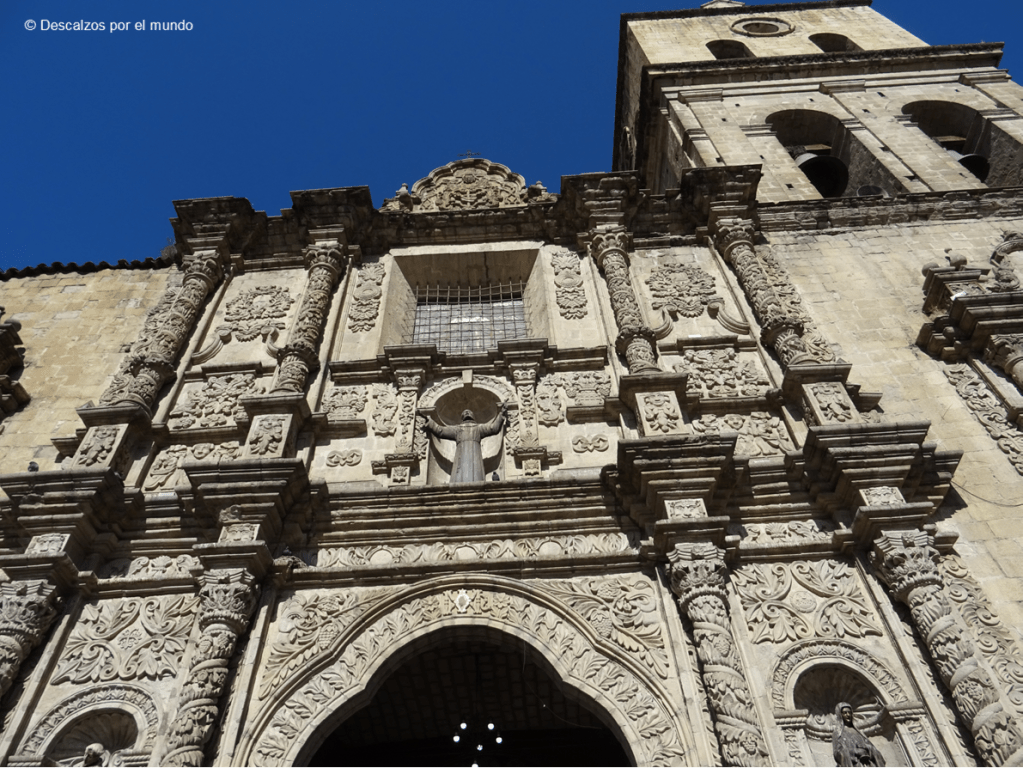 No muy lejos de aquí, se ubica la plaza de San Francisco que, en el momento de nuestra visita, estaba totalmente levantada por obras. Lo más notable que vamos a encontrar aquí es la basílica de San Francisco, de 1548, con una fachada decorada con motivos florales típicos de la zona, como piñas o chirimoyas, además de rostros con rasgos indígenas. A este tipo de corriente artística se la conoce como barroco andino o mestizo. Al estar la plaza en obras, no pudimos más que ver esta fachada desde cerca, sin la perspectiva que da la distancia.