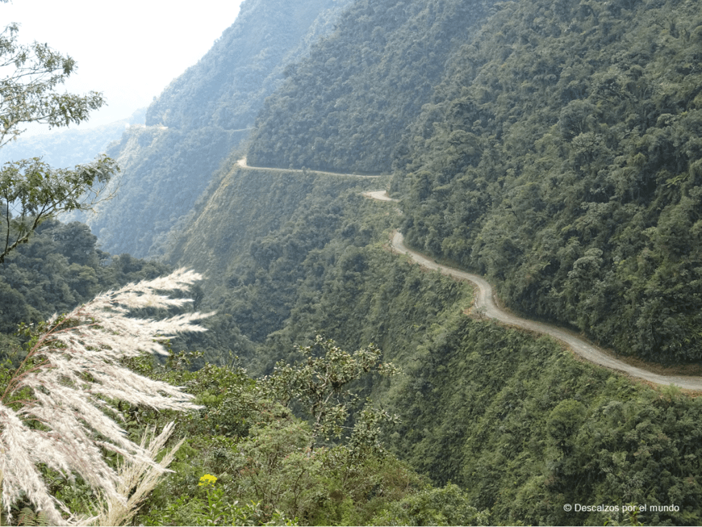 El Camino de Los Yungas, nombre oficial de la carretera que une los 80km que separan La Paz y Coroico, es más conocido por el infame nombre de Carretera de la Muerte debido al gran número de accidentes con pérdida de vidas humanas registrados. Se calcula una media de 26 vehículos despeñados y 96 muertos por año, siendo el más sonado el del camión con 100 pasajeros que cayó al vacío.