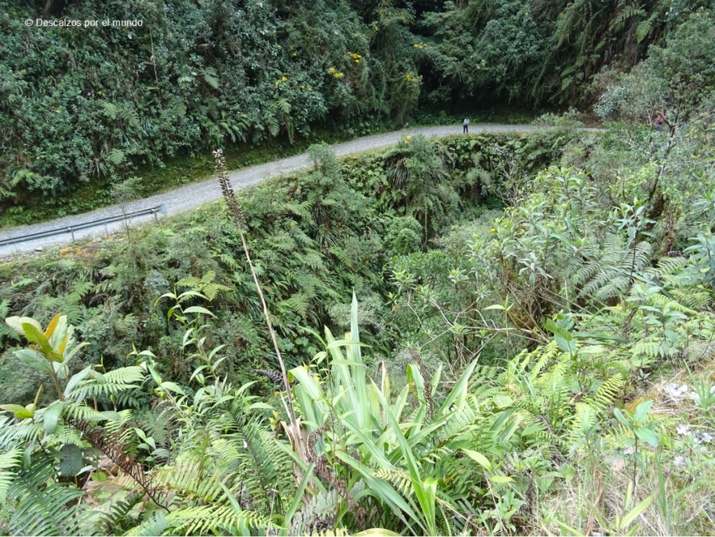 Al margen de miedo y nervios, el escenario es una maravilla. Una naturaleza amazónica frondosa, de un verde como no he visto en ningún otro lugar, cascadas y saltos de agua, zonas que no han visto nunca el sol. Montañas altísimas y, en algunos tramos, se ve una línea que las secciona horizontalmente en dos: es la carretera.