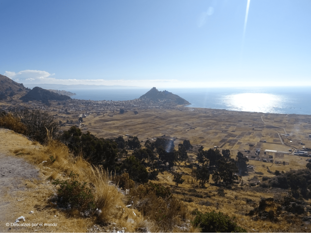Cuando salíamos de Copacabana, lo hicimos por la Ruta Nacional 2 y paramos en uno de los miradores, donde se tienen unas vistas impresionantes de la ciudad y el lago, además, se ven restos del antiguo camino del inca. Cuidado, no confundirlo con el Camino Inca, que une Cuzco con Machu Pichu, ya que el camino del inca es el nombre que recibe el complejo de caminos que suponían la red viaria del Imperio Inca, todos ellos vinculados con Cuzco.