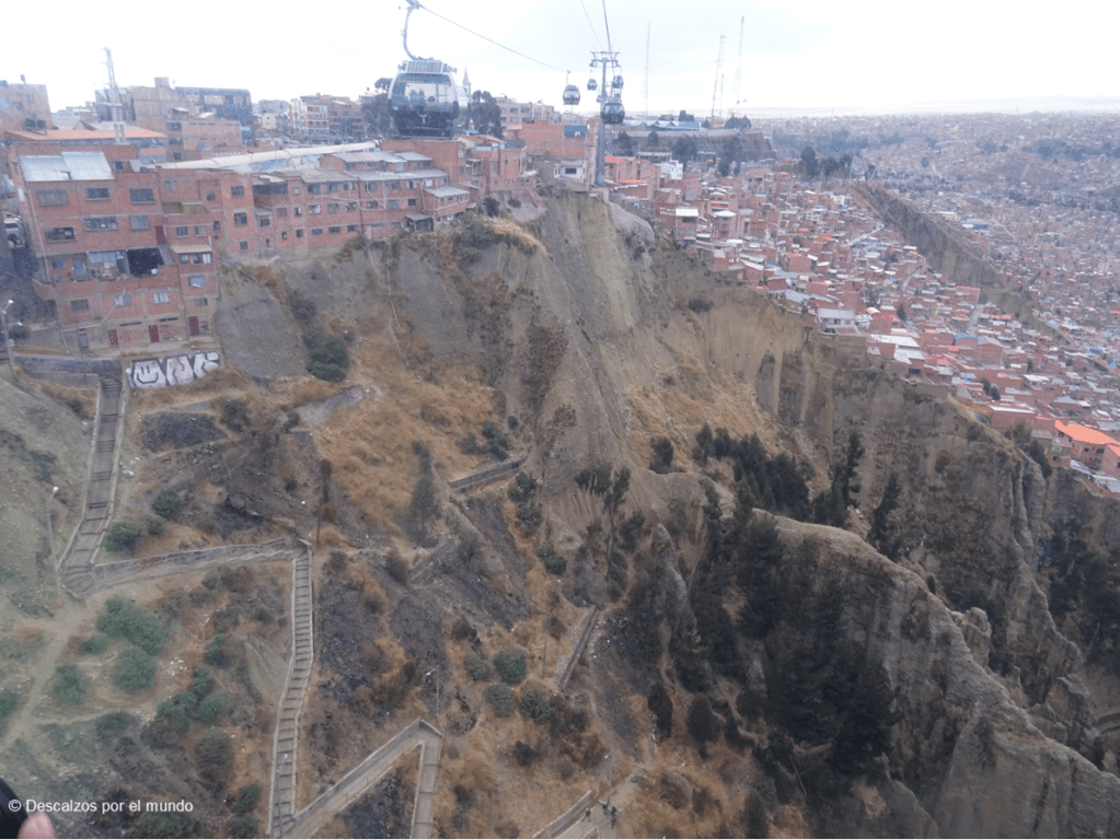 En La Paz la situación no es muy diferente. Cuando sobrevuelas la ciudad en teleférico, pasas por barriadas de casas extremadamente humildes, en el mejor de los casos, o que llegan a ser chabolas. Viviendas al borde un de precipicio, otras a las que se llega tras una subida muy considerable por una escalera que ríete tú del Himalaya. Según nos dijeron, todas la población tiene agua corriente, luz eléctrica y alcantarillado. No he encontrado la información contraria, así que habrá que creerlo, pero me reservo el derecho a permanecer escéptica.