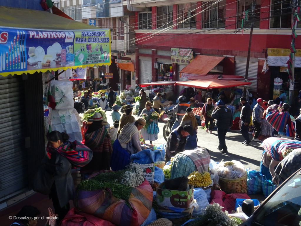 Dejamos el silencio del desierto para entrar de lleno en el caos de La Paz, donde nos entregamos a calles y plazas llenas de vida, de gentes y de coches. Sobrevolamos los tejados en teleférico, uno de los medios de transporte público, y nos perdimos entre el gentío de mercados al aire libre.