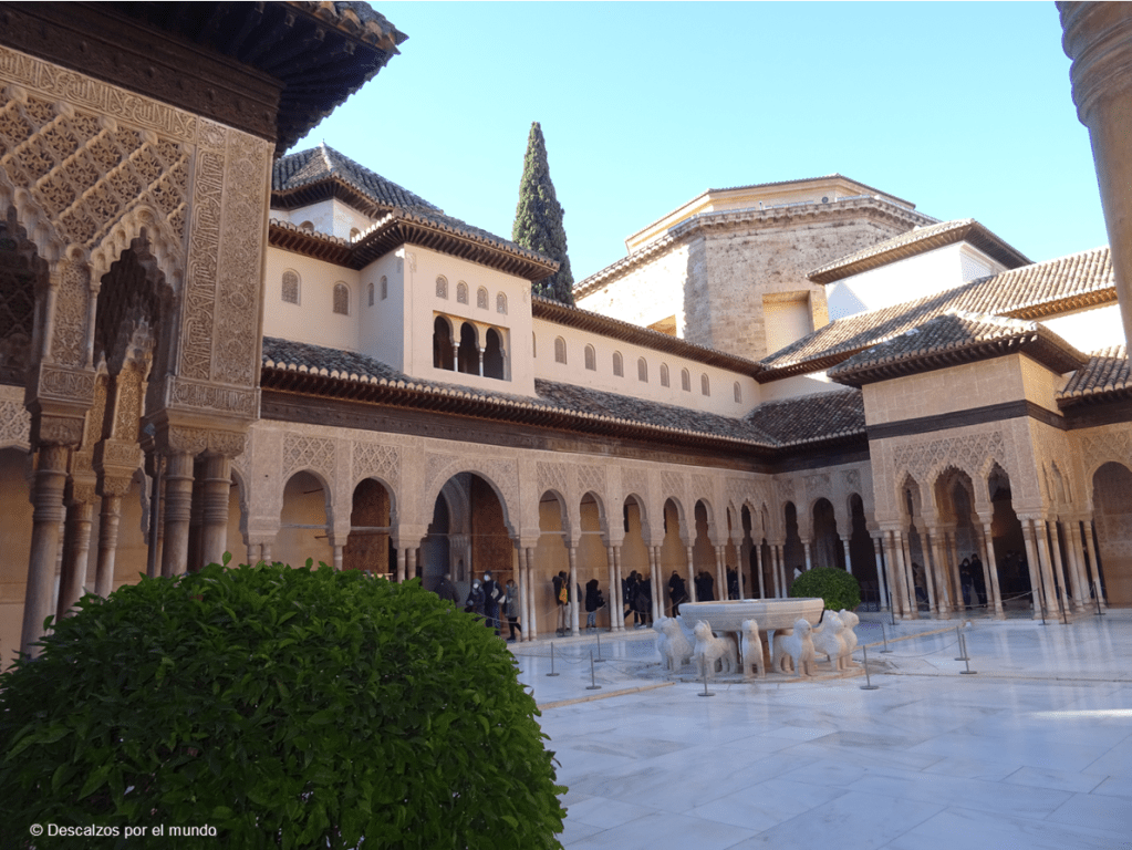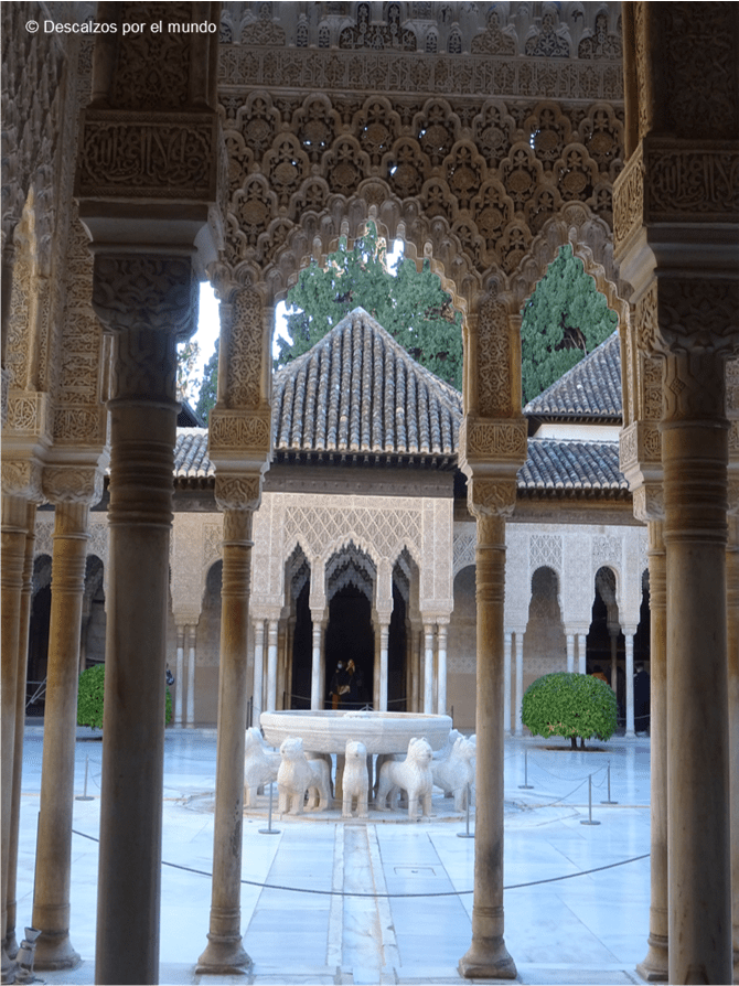 Teníamos la visita a primera hora, y fuimos directamente a ver los Palacios Nazaríes. Imposible describir tanta belleza, los ojos se me llenaron de lágrimas: síndrome de Stendhal de manual. Estás allí y no te salen las palabras. Pasé por cada rincón, me asomé por cada puerta y celosía, aluciné con el reflejo perfecto en el agua en el Patio de Comares, me temblaron las rodillas en el Patio de los Leones, me estudié con atención cada filigrana. ¿Y si me quedo aquí para siempre?