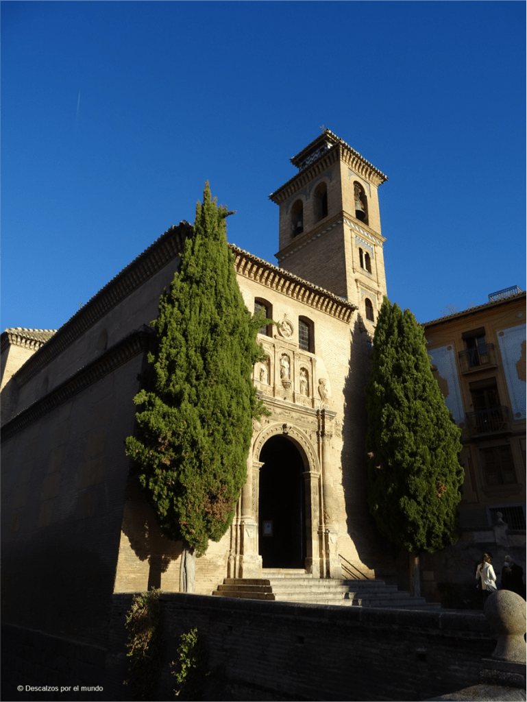 Pasamos por delante de casas encaladas, con macetas de colores en el exterior, amplias ventanas y con una belleza que duele. Llegamos a un edificio con un patio abierto y no dudamos en entrar. Es la Parroquia del Salvador. Hoy, iglesia; ayer, mezquita. Pero no cualquier mezquita: la mezquita mayor del Albaicín. Un claustro con arcos encalados, del siglo XII y que rodeaban el patio de las abluciones. Y macetas con granadas.