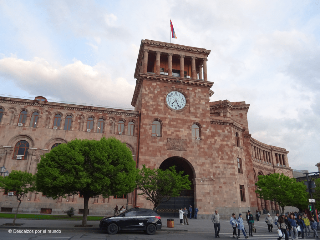 Antes de 1991 era conocida como la plaza de Vladimir Lenin y había un gran búnker construido durante la Guerra Fría que, por desgracia, se encuentra cerrado. Los edificios son majestuosos, entre los que se encuentran la Galería Nacional Armenia, Museo de Historia de Armenia, el hotel Marriott, así como distintos edificios gubernamentales. En verano, las fuentes danzantes son un espectáculo bastante recomendado, con el agua moviéndose al ritmo de la música, qué pena no haberlo podido ver.