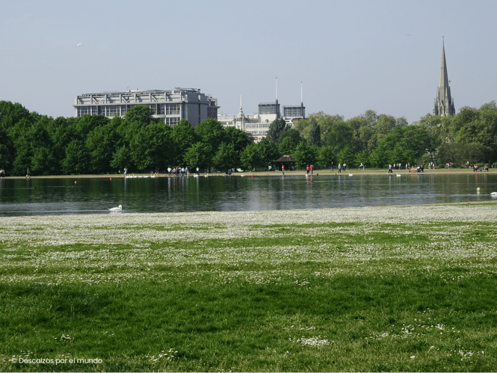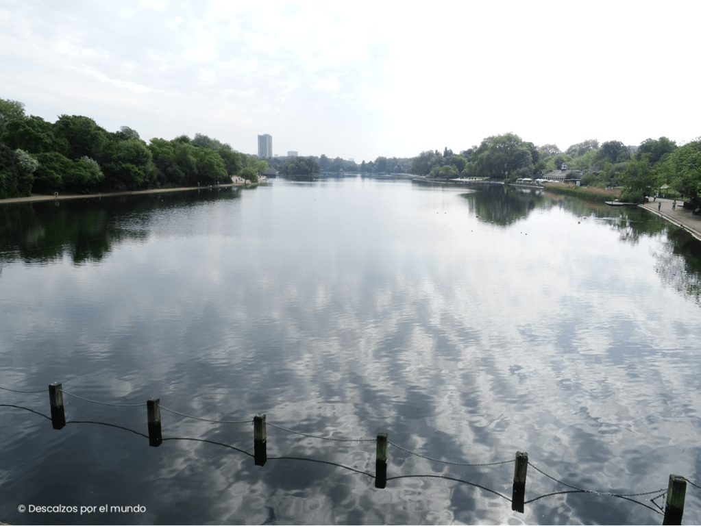 Desde aquí llegamos andando hasta el Serpentine. Se trata de un lago artificial, que recibe agua bombeada del Támesis. Debe su nombre a su forma curvada, que parece una serpiente y podemos ver cisnes, patos y gansos.