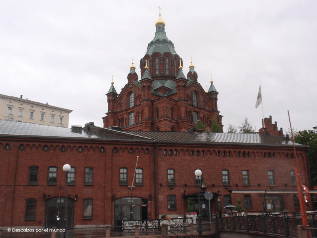 Como contraposición a la blancura y sobriedad de Tuomiokirkko, Uspenskin Katedraali, es decir, la catedral ortodoxa Uspenskin. Construida entre 1862 y 1868 con ladrillos rojos y cúpulas bizantinas, enfrentada a Tuomikirkko, pero en la isla de Katajanokka.