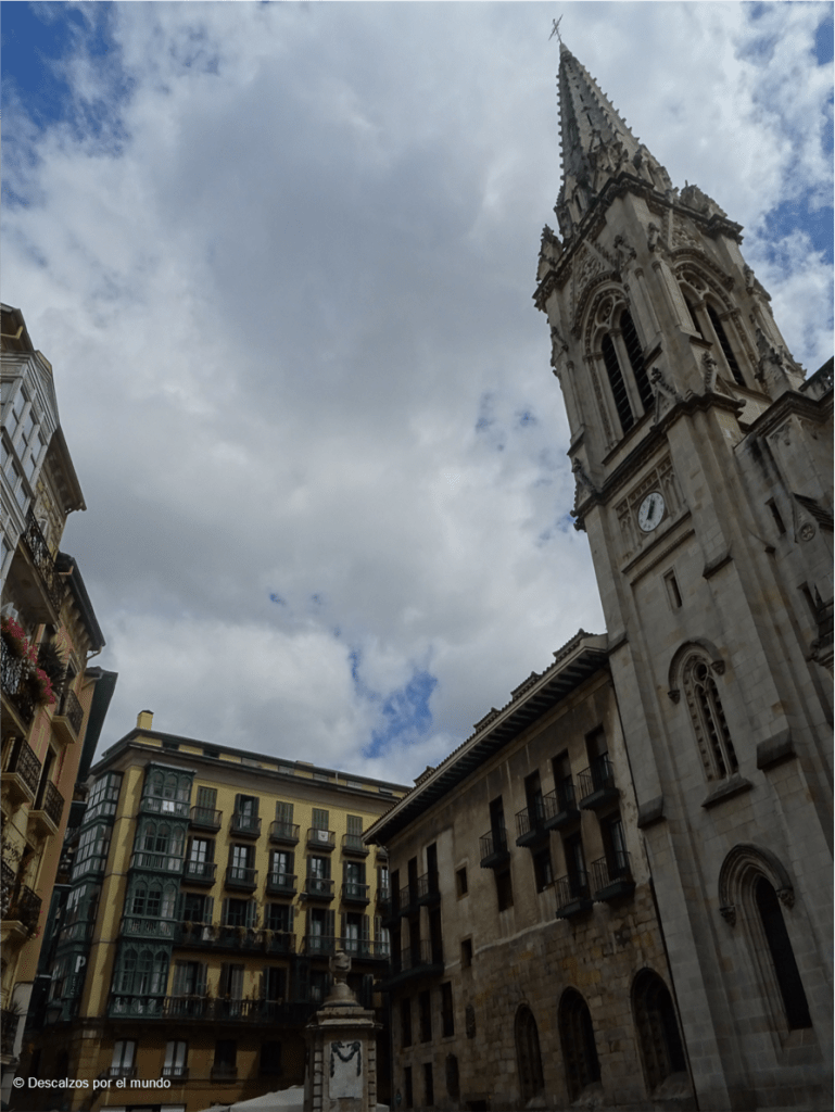 El callejeo sin mapas me lleva hasta la catedral de Santiago, etapa del Camino de Santiago. Templo gótico de mediados del siglo XIV, aunque la fachada principal y la torre son bastante posteriores: de 1880 y obra de Severino Achucarro. El claustro, el coro y la cripta se levantaron sobre el templo original.