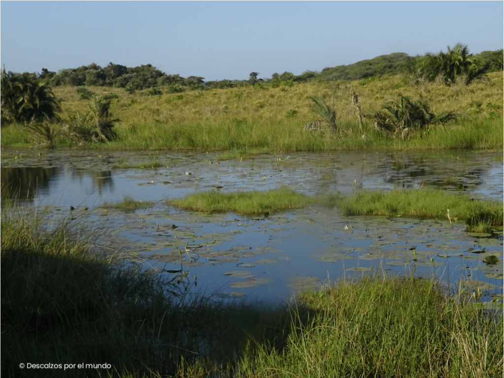 Dunas cubiertas de vegetación, pequeñas lagunas, búfalos tranquilos, un hipopótamo solitario comiendo hierba, un kudu con unos cuernos que quitan la respiración, aves de muchos colores posadas en nenúfares. Bienvenidos a la naturaleza sorprendente.