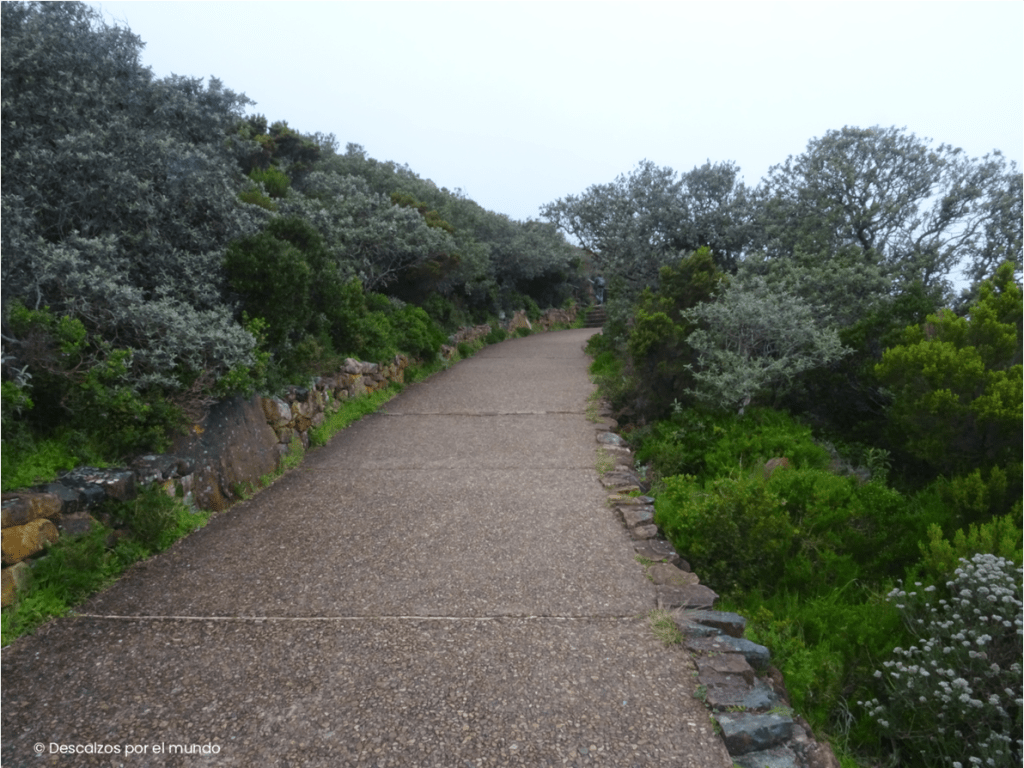 Subimos hasta Cape Point por un camino que resulta realmente bonito, plagado de vegetación endémica (fynbos, proteas o renosteveld, entre muchas otras) y dándonos la vuelta cada poco para ver si la niebla se iba disipando y nos permitía ver las vistas. Se resistía, pero, en algún momento, fuimos capaces de ver el cabo de Buena Esperanza. ¡Toma ya!