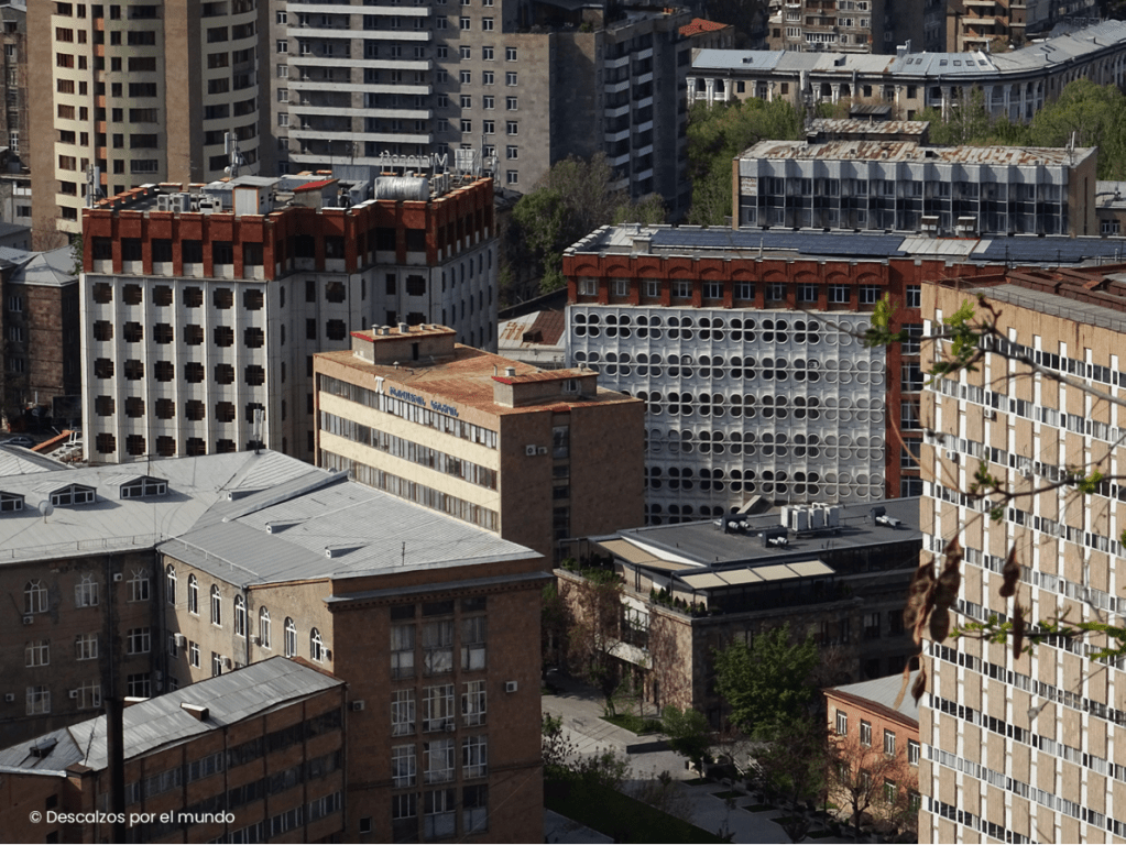No puedo afirmar que Armenia sea el paraíso para encontrar brutalismo a la vuelta de cada esquina, pero caminando por Ereván, es fácil percibir que desprende ese aire que tienen todas las ciudades que pertenecieron a la URSS: avenidas largas y anchas, bloques de casas iguales y muy similares, abundancia de parques y zonas verdes, plazas monumentales o edificios emblemáticos representativos de este tipo de arquitectura.